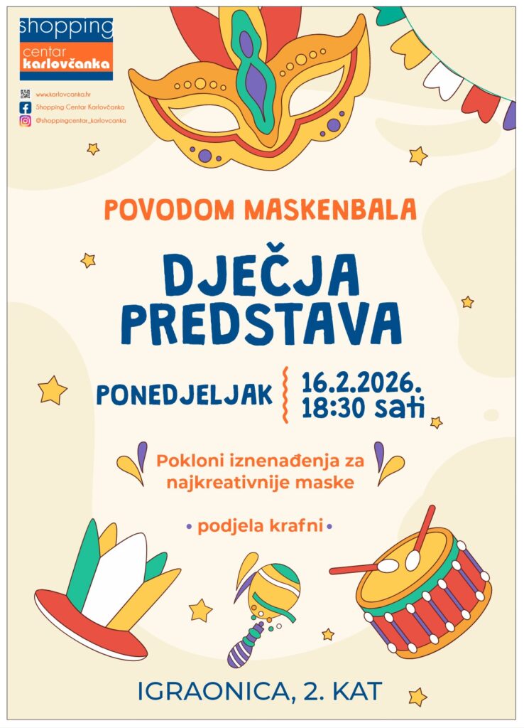 Draga djeco i roditelji, pripremite svoje maske i posjetite Shopping centar Karlovčanka povodom ovogodišnjeg maskenbala. ![]()